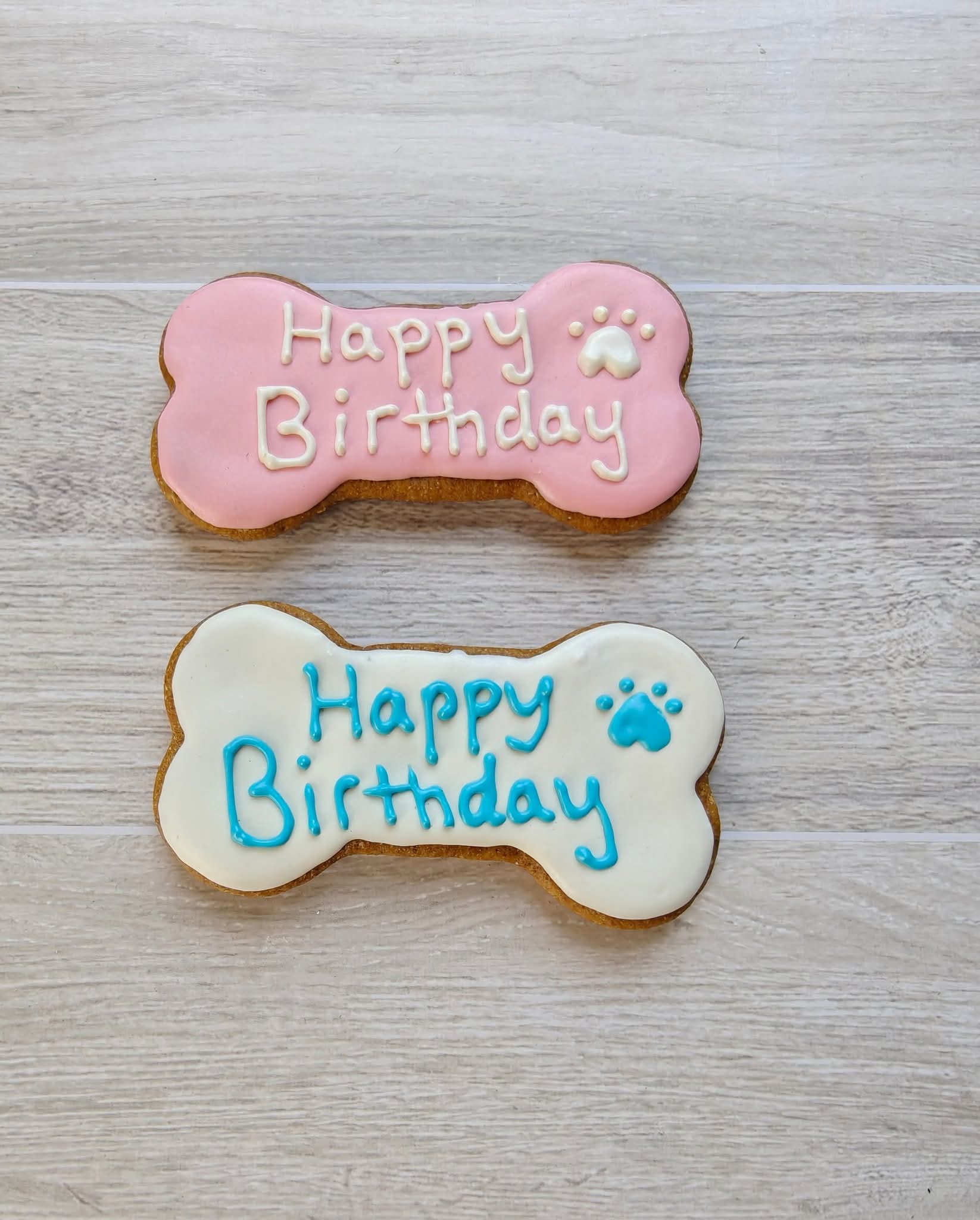 Celebrate your pupper's special day with a Birthday Cookie! Made with love and wholesome ingredients, this delicious treat is the perfect way to show your pup some love on their birthday. Let them indulge in a wag-worthy celebration with this Happy Birthday Cookie.