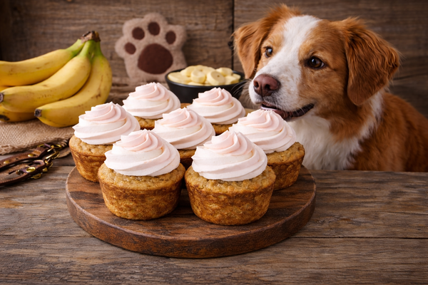 Banana Pupcake Ingredients: Banana, egg, coconut flour, olive oil, apple cider vinegar, baking soda.