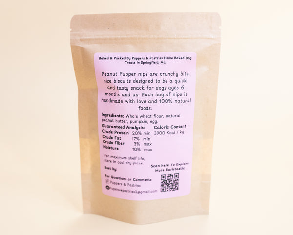 Ingredients: Whole wheat flour, natural peanut butter, pumpkin, egg.