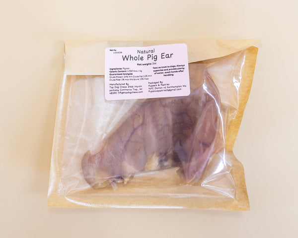 Pig ears are a popular dog treat made from the ears of pigs, processed to be both tasty and durable. They're a natural source of protein and fat, providing your dog with a satisfying chew that helps promote dental health by reducing plaque and tartar buildup. Pig ears are often free from artificial additives and preservatives, making them a wholesome option for rewarding and entertaining your pet. Always supervise your dog while they enjoy pig ears to ensure safety and prevent choking hazards. Provide plenty of water.